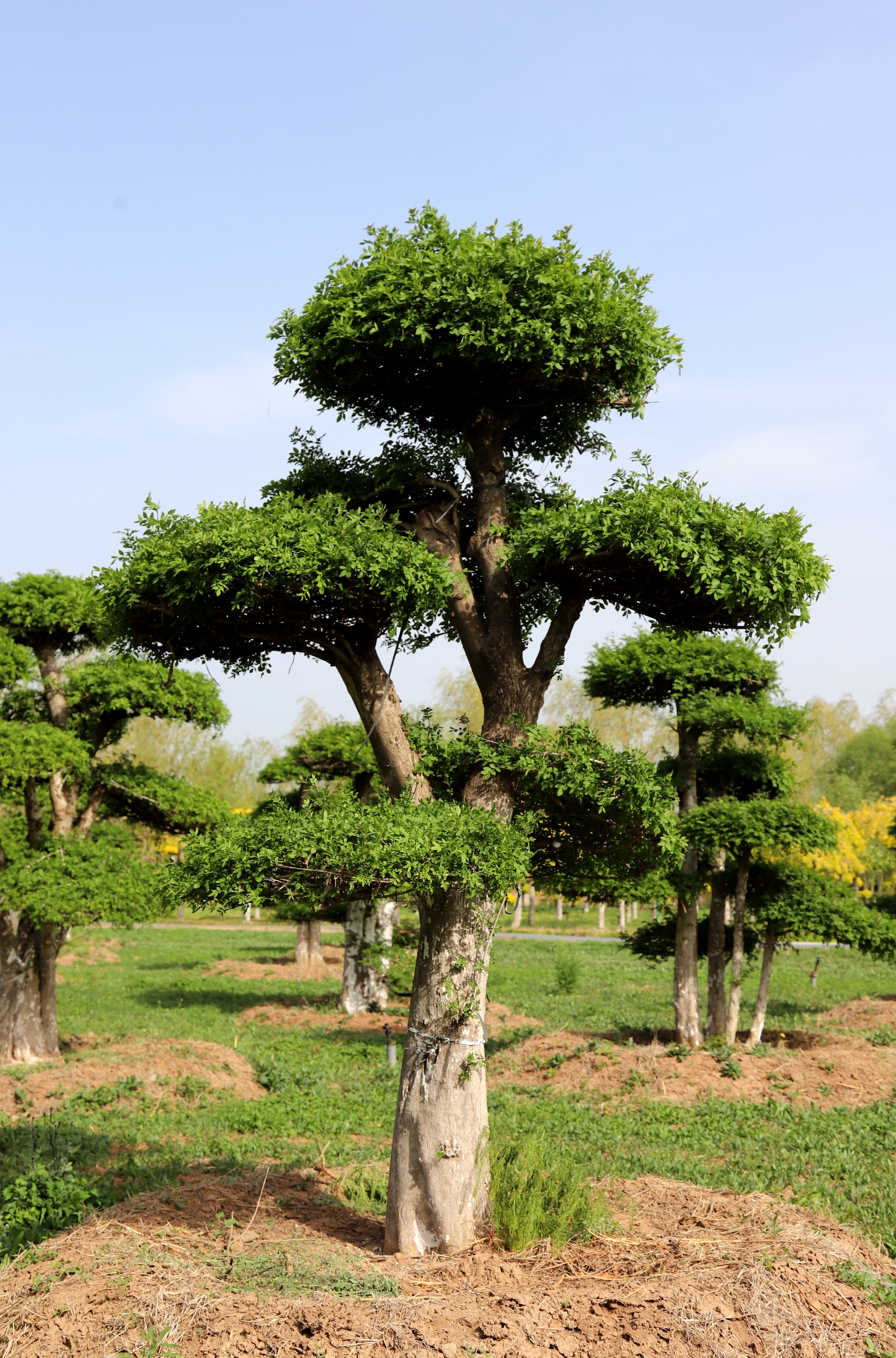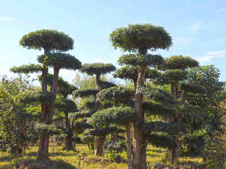 該樹種萌芽力強,耐摘葉,易于造型加工,其復葉易形成符合要求的樹冠。公司擁有專業的造型技術團隊,對原材料精挑細選,每年對其進行精心造型、管護,產品規格齊全,數量充足。