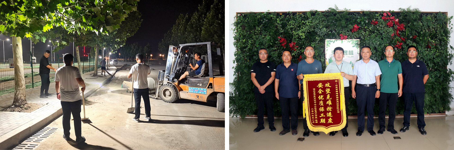時間前移至7月20日下午,市民文化中心主干道上其他參建單位的建筑垃圾亂堆亂放,無法順利完成清理工作,為確保“博興縣首屆青島啤酒節”順利舉辦,指揮部領導果斷指示,應急工程找京博逸林,接到通知時間已經是晚上8點,在沒有其他力量可以借助的情況下,郭豐超帶領項目三部通宵清理現場,最終天亮之前順利完成任務。啤酒節順利結束后,博興縣市民文化中心工程籌建辦公室來到京博逸林公司,送上“攻堅克難搶進度,安全優質保工期”的錦旗,以此表示對逸林公司施工項目組的感謝和褒獎。